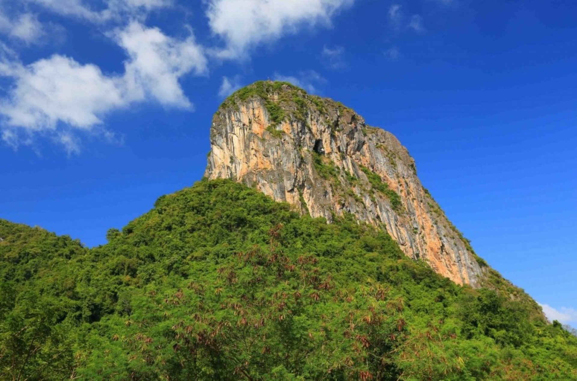 Khao Ok Thalu ("The Mountain with a Hole Pierced Through the Chest") is a distinctive limestone mountain located in the heart of Phatthalung town. Standing at approximately 250 meters high, it serves as the official symbol of the province and is even featured on the Phatthalung provincial seal.
