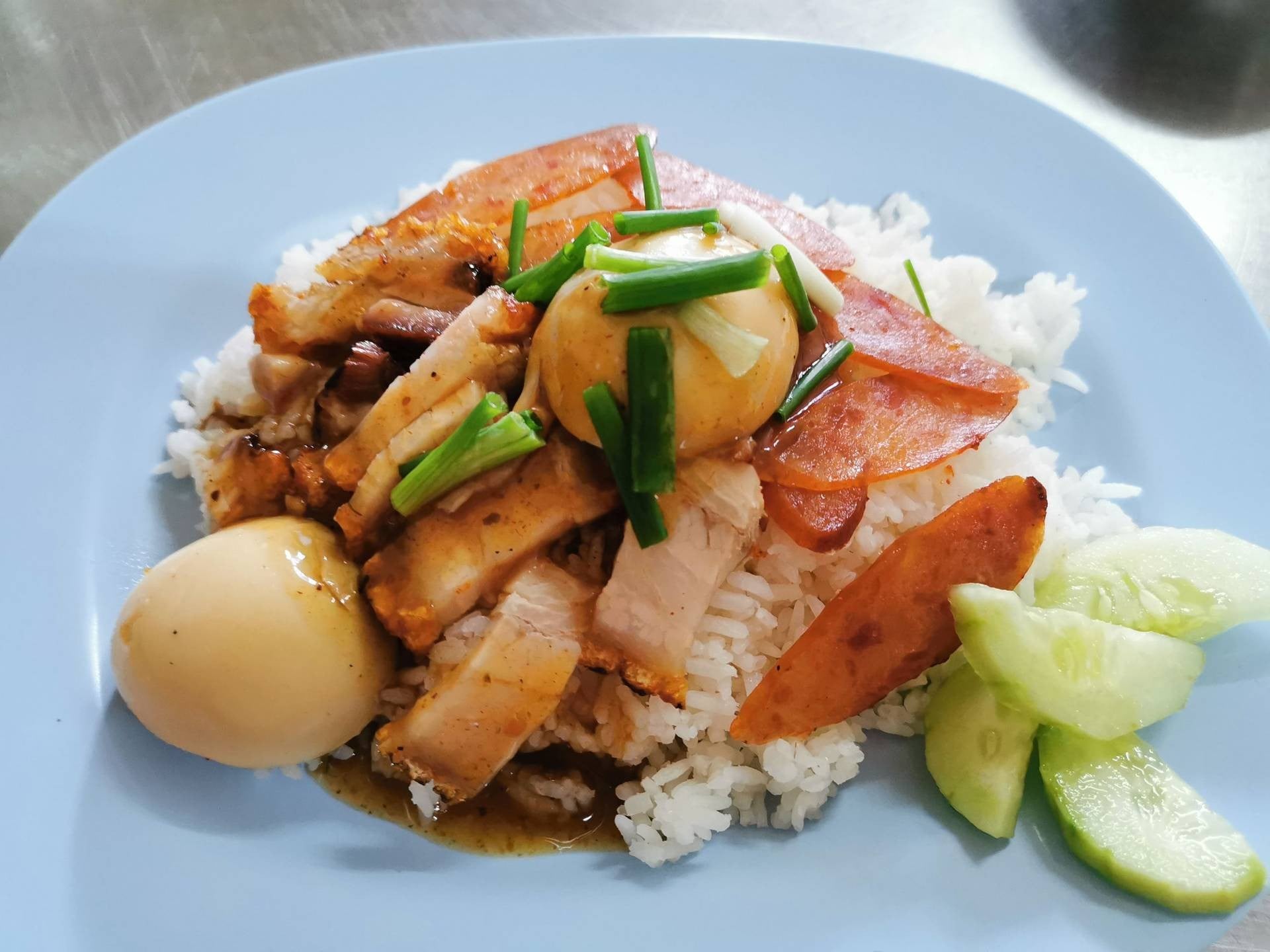 While many places serve Red Pork, Heng is famous for its generous portions and the addition of a perfectly boiled egg (often with a creamy yolk) and fresh cucumbers that cut through the richness of the meat. It is a no-frills, authentic experience that captures the "old town" spirit of Surat Thani.