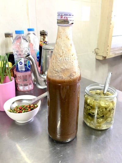 • The Black Soy Sauce: Be sure to add a few drops of their dark soy sauce with sliced chilies (Prik Nam Som) provided on the table; it adds a sour kick that elevates the peanut gravy.